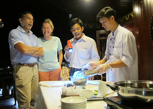 • Cruising and visiting the Vietnamese traditional flea market selling rats, snakes, frogs. Visiting Mr Ba Cong’s fruits orchard.